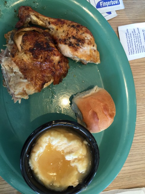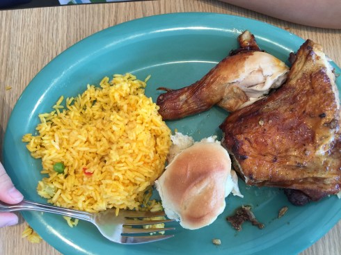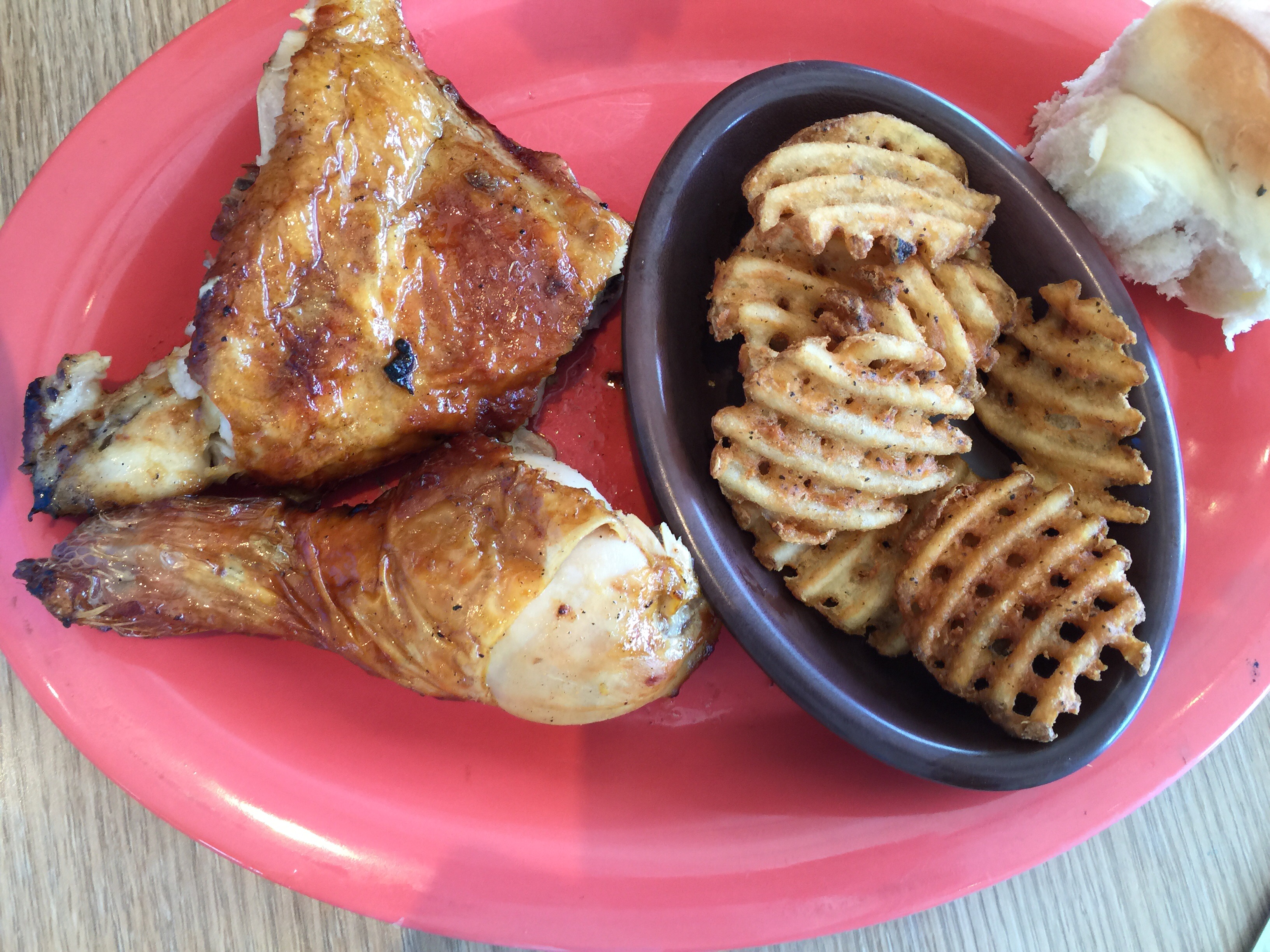 如果爸爸也點$5.10的1/4 烤雞餐,那全家的花費根本不到美金$12.00,只要加消費稅,不需留小費,因為這家是快餐店。當然如果服務周到,留一些小費鼓勵這些拿基本薪資的人員,也就歡樂滿人間。