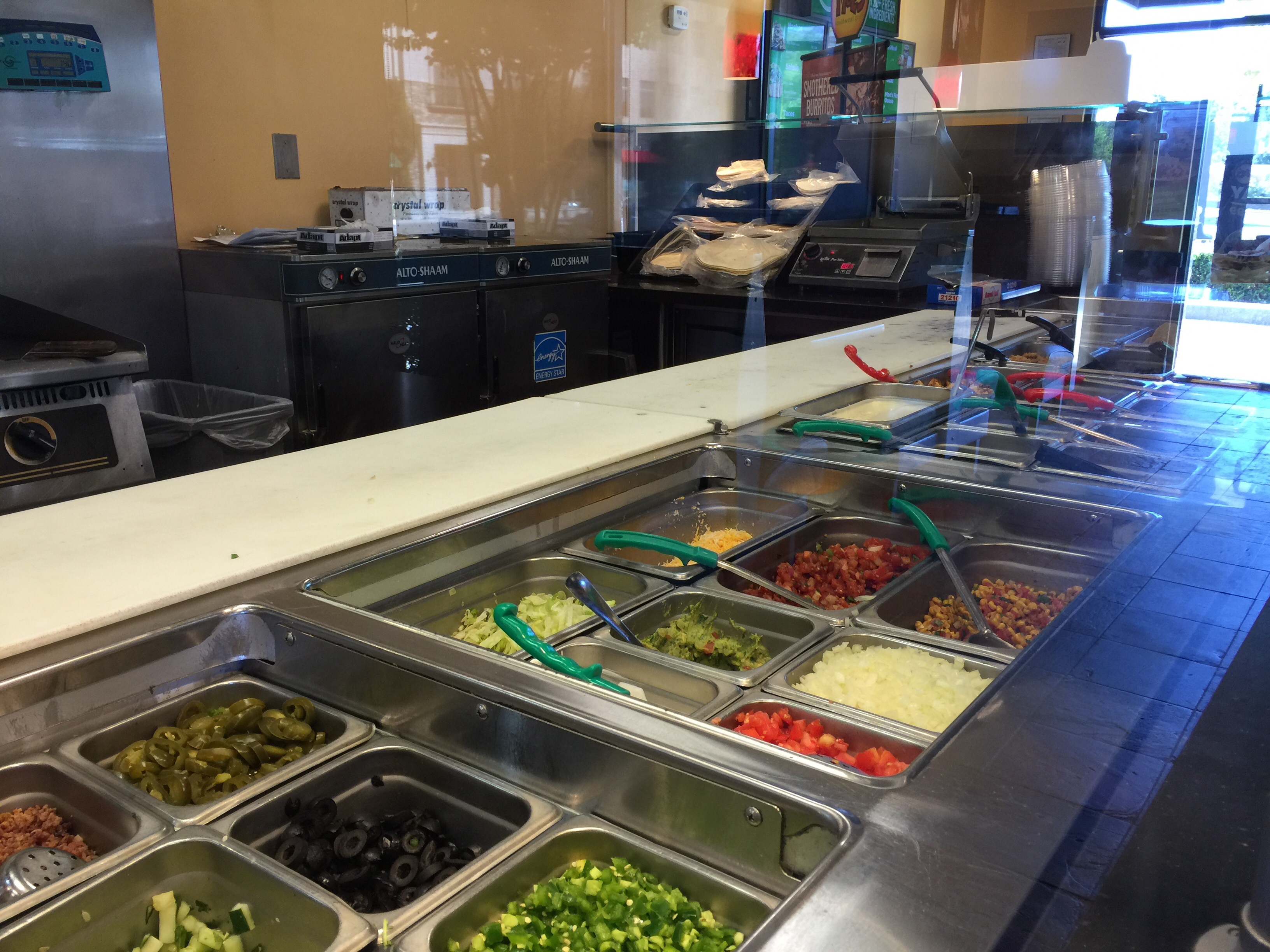 選好載具之後,裏面的東西全部可以加。我們喜歡grilled onion, grill peppers(炒青椒),酪梨醬(瓜卡莫里)額外加錢,還有新鮮墨西哥辣椒🌶️(哈樂ㄆㄧ扭)