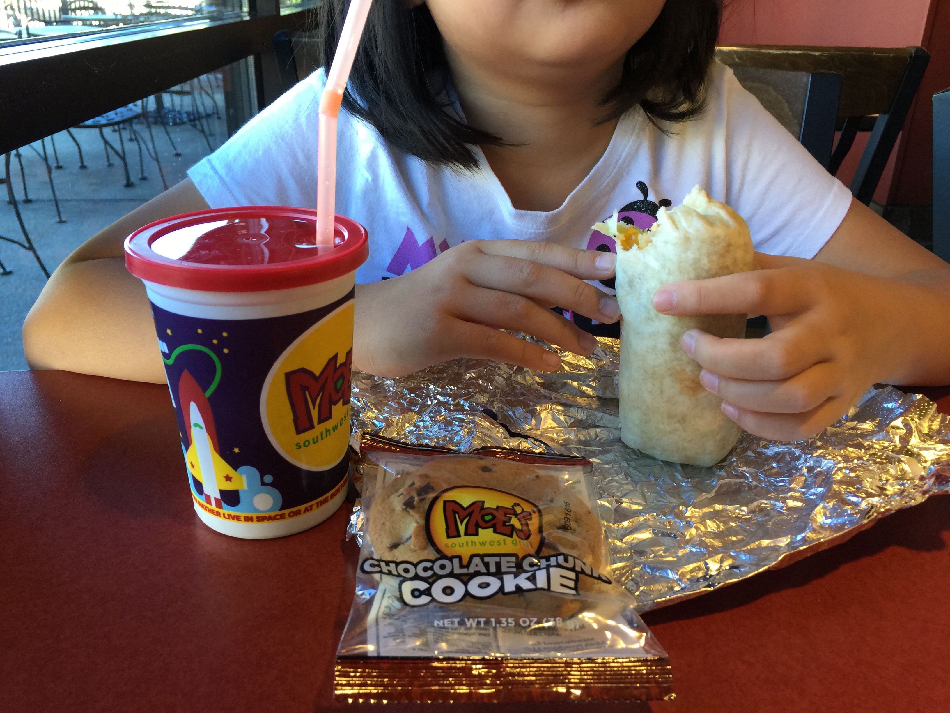 我們喜歡Moe’s 某些加盟店固定有kids eat free日, 免費的tortilla(投提啊) chips 和salsa bar,肉類調理的味道讓我家孩子接受度很高,不像Chipotle他們都嫌辣,退貨率百分百。